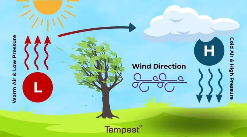 The wind doesn’t just magically blow across open fields. Something has to give the air energy for it to move. For wind, it’s motion is typically caused by a temperature difference. When the sun heats up air, it rises. Nearby cool air then moves to that low-pressure zone, creating wind. That then causes the air above it to fall, which makes yet another low pressure area for the hot air above to go.