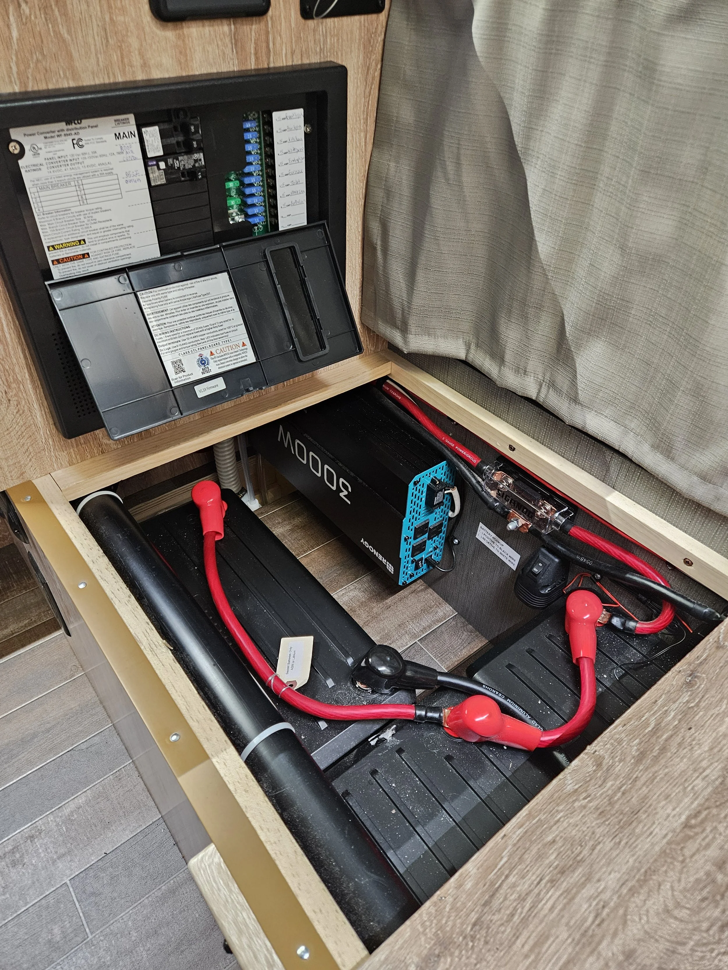That’s why our upgrade included a non-negotiable 150A fuse to protect this wiring. One day, we agreed we’d upgrade to 4/0 Solid Copper for the true 3KW inverter rating. But for now, a properly-sized fuse was essential.